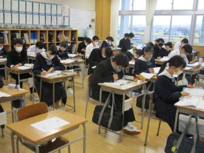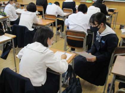期末考査に向けて、復習をしています。互いに教え合う姿も見られます。
