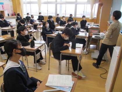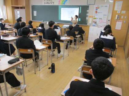 期末考査の解説が行われています。問われていることやその意味を丁寧に確かめています。