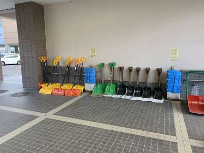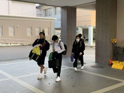 昨日からの強風で玄関マットやプランター、除雪用スコップが散乱していました。早く登校した生徒がせいとんしていました。ありがとう。