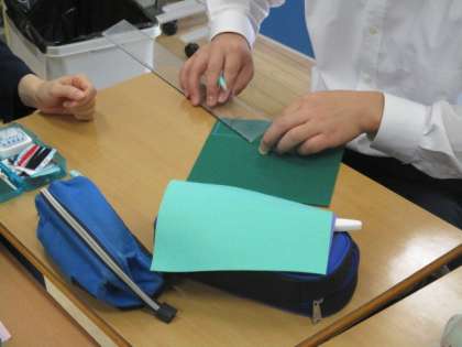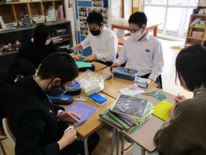 フェルトを使ったクリスマスツリー作りをしています。いるいろな色を選んでカラフルに仕上げています。