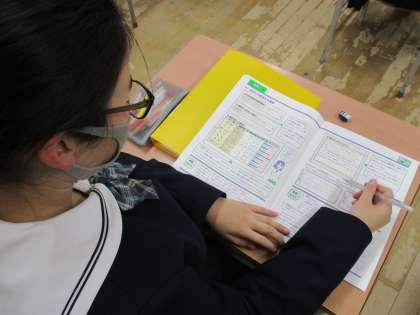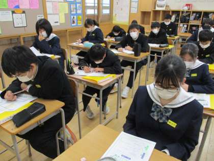 1学年では、進路学習がスタートしています。将来の希望する職業や適性に関するアンケート結果から、さらに自分や友達のよさを発見する姿がありました。今後は、関心のある職業を調べていきます。