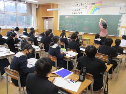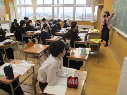 コンパスを使った作図に挑戦しています。「弧は、こーやってできるの!」みんなで楽しく学んでいます。
