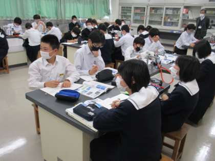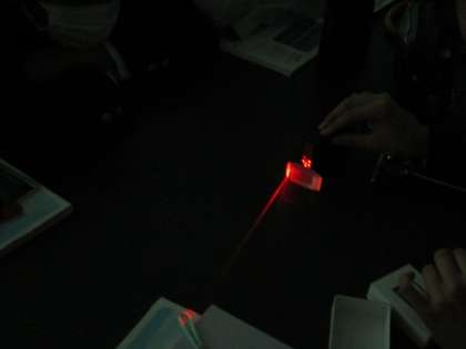 光の屈折について、レンズに光を通す実験を通して、光が屈折する様子を確かめています。