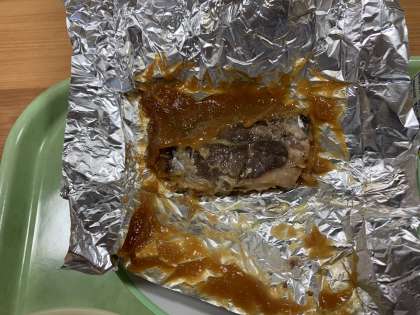 さばの銀紙焼き、甘めの味噌が最高。ごはんが進みます。
