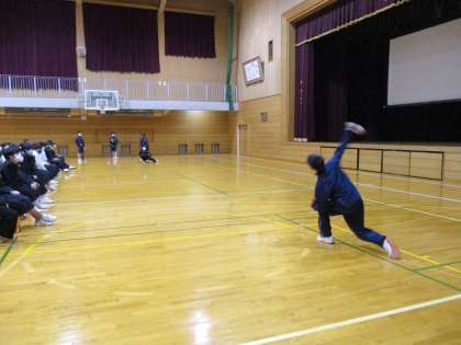 最後は野球チームによる、キャッチボールや守備練習、ピッチングの披露でした。どの発表も日頃の努力の成果が発揮されていました。これからも自分の特技を磨いていってください。