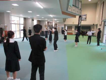 生徒会応援団の新生メンバーの練習が今日も続いています。先輩方の手取り足取りの指導のおかげで、だんだん形になってきました。休み時間にも自主練習をする姿も見られます。ますます磨きがかかっています。