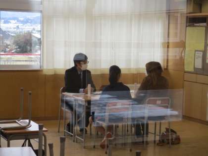 足下の悪い中お越しいただきありがとうございます。懇談会場は、どのクラスも温かな雰囲気に包まれているようです。