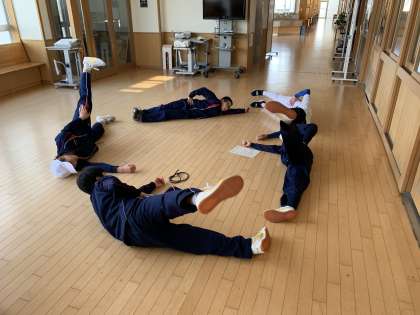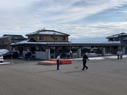 グラウンドにはまだ雪が積もっているので、駐車場などを使って練習しています。
