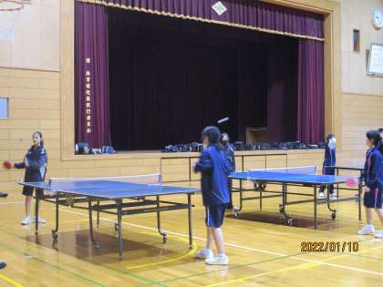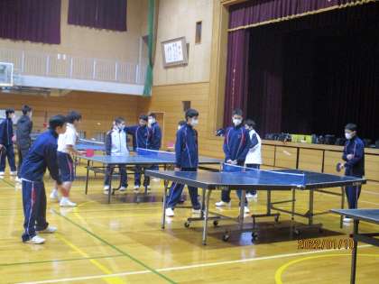 卓球部は、小グループになって相手を換えながら、ゲーム形式で練習しています。