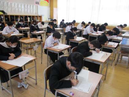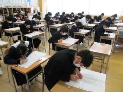 1年生は昨日に引き続き、冬休み明けテストに取り組んでいます。