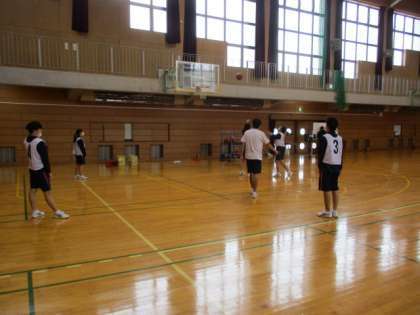 バスケットボールでいい汗を流しています。男女ともに声を掛け合ってプレーしています