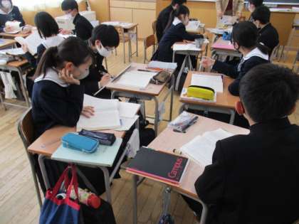 「走れメロス」を読み、場面を4つにわけています。班で話合いながら考えています。