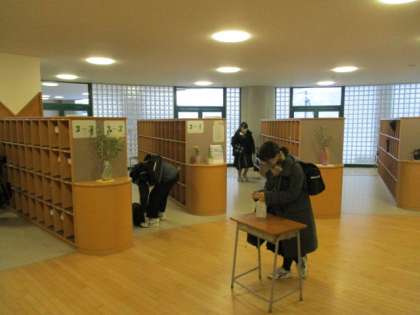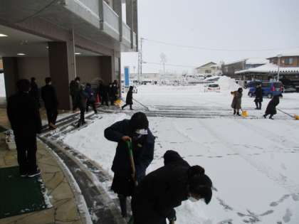 結構な積雪となりました。除雪当番の1年3組の生徒は一生懸命生徒玄関前の除雪に励んでいました。今日も玄関前はすっきりしています。