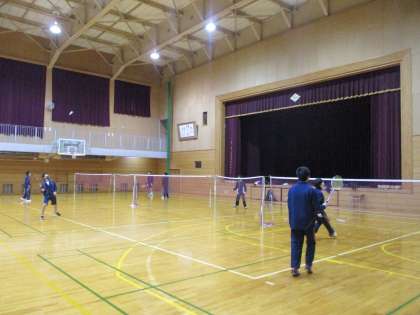 午前中、体育館では男子バレーボール部と男子バドミントン部が寒い中、元気に活動していました。多目的ホールでは、吹奏楽部が今後に向けてミーティングをしていました。
