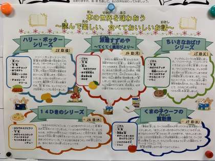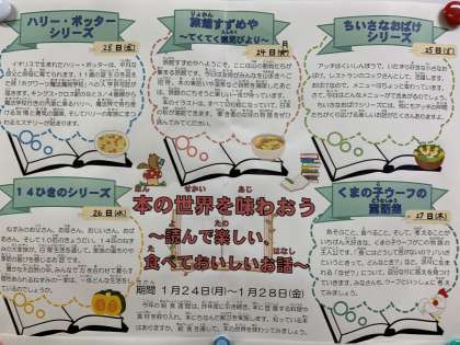 本にちなんだユニークな名前の献立や特別な食材などが入ります。