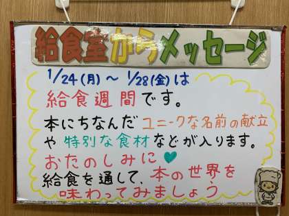 1/24(月)〜1/28(金)は給食週間です。