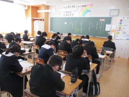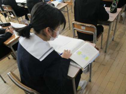 筆者の考えに対する、自分なりの考えをまとめています。根拠が明確にして話せるよう、文章を読み返しながらじっくりと考えています。