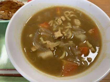 のらねこスープはカレー味だったので、具を先に食べ、スープにご飯を投入。