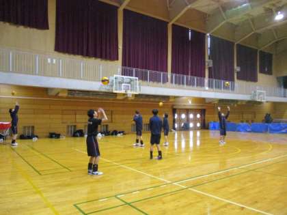 男子バレー部は、基礎練習に熱心に取り組んでいます。