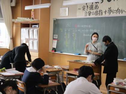 自分の未来予想図をつくろう、ということで、友達と意見交換をしながら将来の夢やこれからの自分の姿に思いを膨らませています。