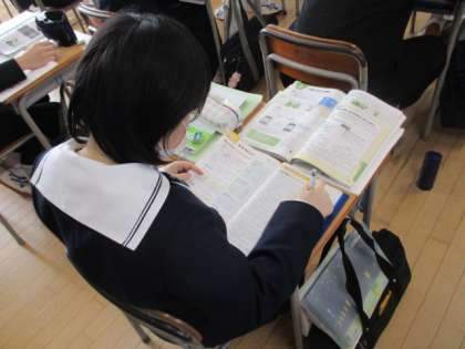 電流や電圧、回路について、ワークをもとに振り返りを行っています。