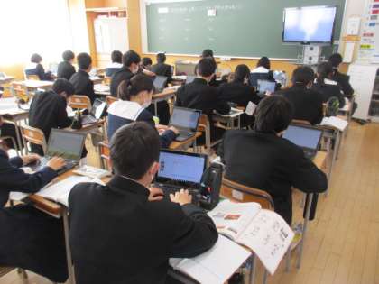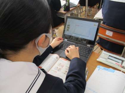 単語の意味を調べ、クロムブックに書き込んでいます。
