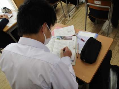 単語や表現の仕方を一つ一つ丁寧に確認しながら、入試に向けての対策問題に取り組んでいます。