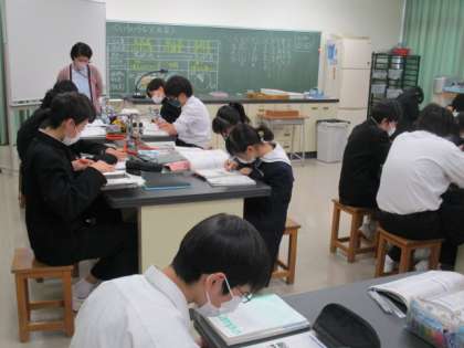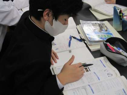 火成岩の種類や特徴について調べ、ノートにまとめています。
