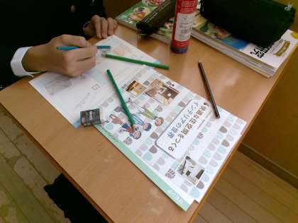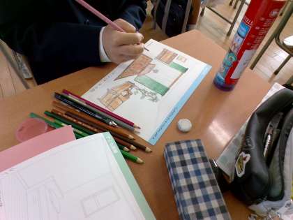 2年生の家庭科の授業では、住生活の学習「自分のイメージにぴったりな部屋のトータルコーディネートを工夫しよう」という課題に取り組んでいます。癒やしの空間を作るために観葉植物を設置したり、勉強への集中力がアップする視覚的な色遣いにしたり「それぞれオリジナリティが溢れています。