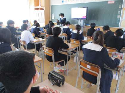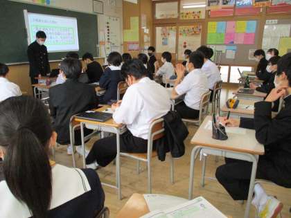 1学年では、職業について調べた内容をスライドにまとめ、学級で発表しました。いろいろな職業について興味深く聴き、視野を広める機会になりました。
