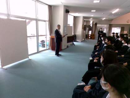 私立一般入試に向けて学年集会を行いました。明日は、全力で臨みましょう!
