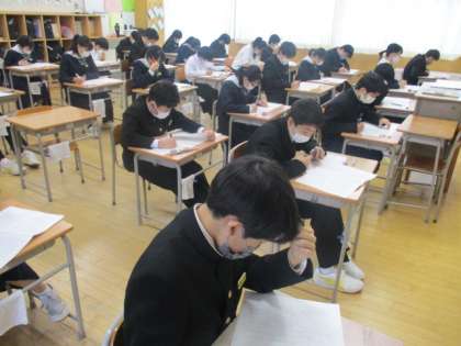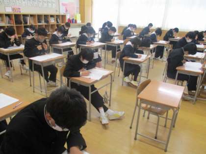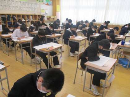 1年生も確認テストを行っています。これまでに身に付けた力を試すつもりで、真剣に取り組んでいます。