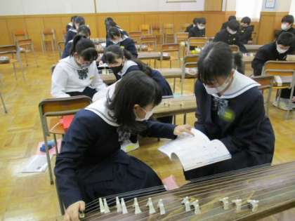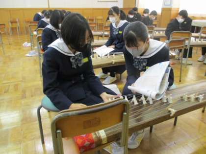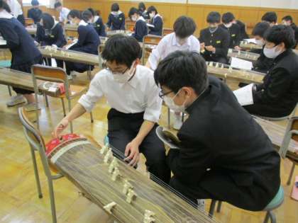 2/41年音楽で箏の授業2回目行いました。「さくらさくら」を最後まで演奏できました。