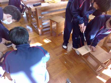 今日は、のこぎり挽きをしました。基本に忠実に行えばまっすぐ切れます。