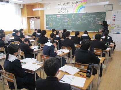 立体の表面積の求め方について考えています。展開図をもとに、どのように面積を求めていけばよいか確かめています。
