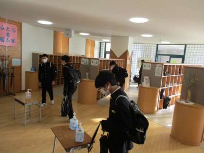 とても天気のよい朝となりました。日差しがとっても暖かいです。今日も城中生は元気に登校しています。