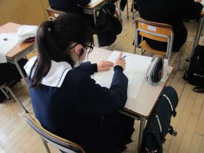 これまでの学習の総復習プリントに取り組んでいます。じっくりと考えています。