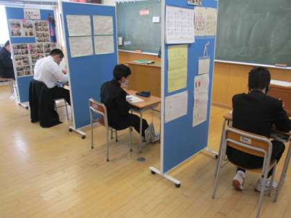 さくら1組でも、学年末考査に取り組んでいます。問題をじっくりと読み、解答欄に丁寧に書き込んでいます。