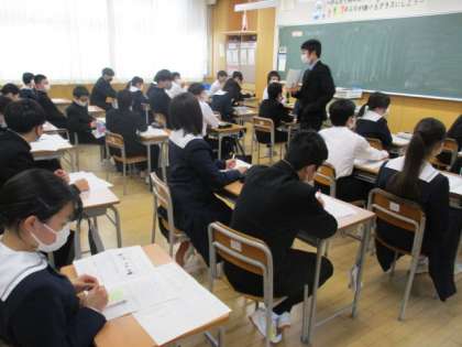 3月1日(火)1年3組 英語 学年末テストの振り返りを行っています。
