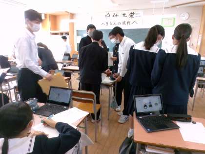 2年2組は城中に必要なピクトグラムを制作し終わり、鑑賞会です!