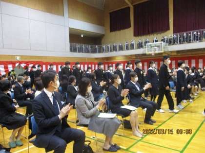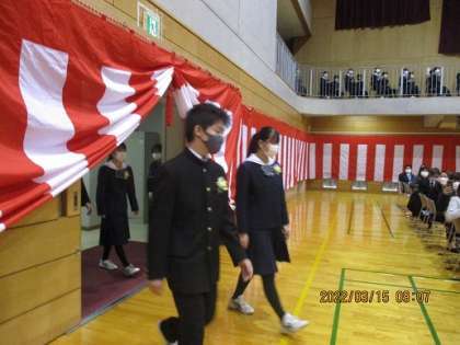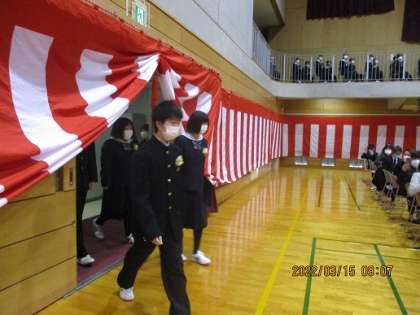 卒業生が胸をはって堂々と入場しています。卒業証書授与式が始まりました。