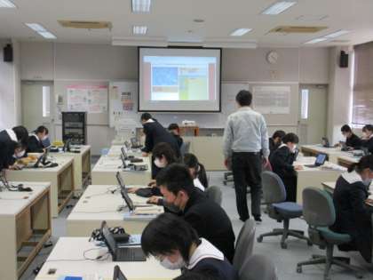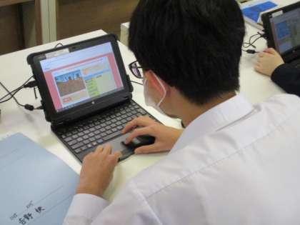 プログラミングソフトを用いて、キャラクターに動きを与えています