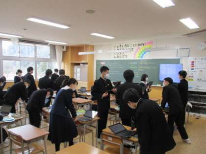 クロムブックに書き込んだことを手がかりにして、「昨日何をしていたのか」について伝え合っています。