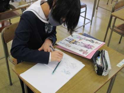 3月17日(木)美術部 イラストに熱心に取り組んでいます。真剣です。