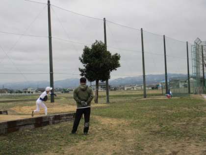 外での練習は、やっぱりのびのび活動できてうれしそうです。思いっきり球を投げ、バッドを振っています。