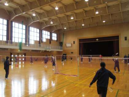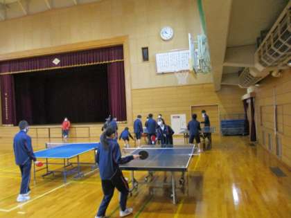 バドミントンと卓球から選択して取り組んでいます。楽しく対戦しています。