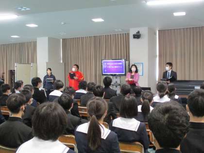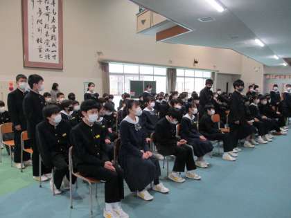 クラスの振り返りに引き続き、「3学期のMVP表彰」そして、1学年担当より、「あいうえお作文『チーム城山1学年』」で1年間を振り返りました。最後に、思い出のスライドショーを見て、成長を感じ合いました。