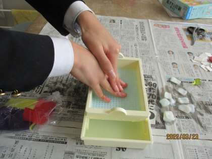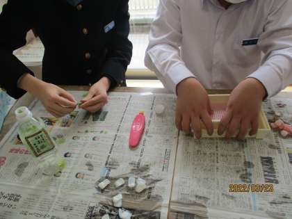 さくら級では、紙すき体験をして和紙作りをしました。和紙の材料になるパルプをペットボトルに入れ、溶けるまで何分も振らなければならないのは大変でした。淡い綺麗な色の和紙が出来上がりました。