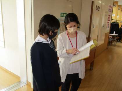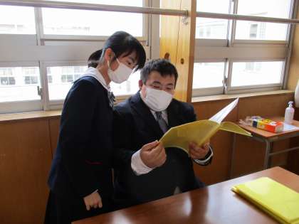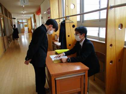 1学年では、担任から生徒一人ずつに1年間の成長を伝えながら、通知表と修了証を手渡しました。