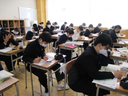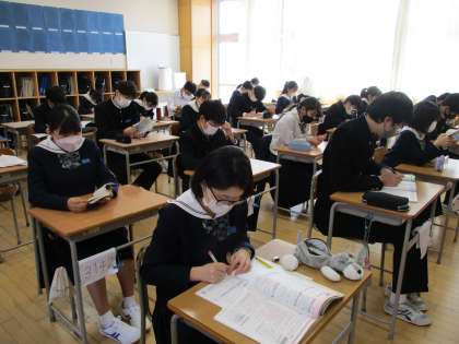 3年生は、来週の学力調査に向けて、これまでの学習を真剣に復習していました。